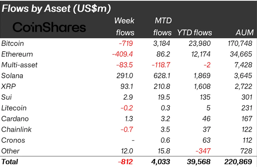 The latest CoinShares report indicates crypto outflows reached $812 million last week. This marks a notable reversal after crypto inflows approached the $2 billion mark in the week ending September 20.