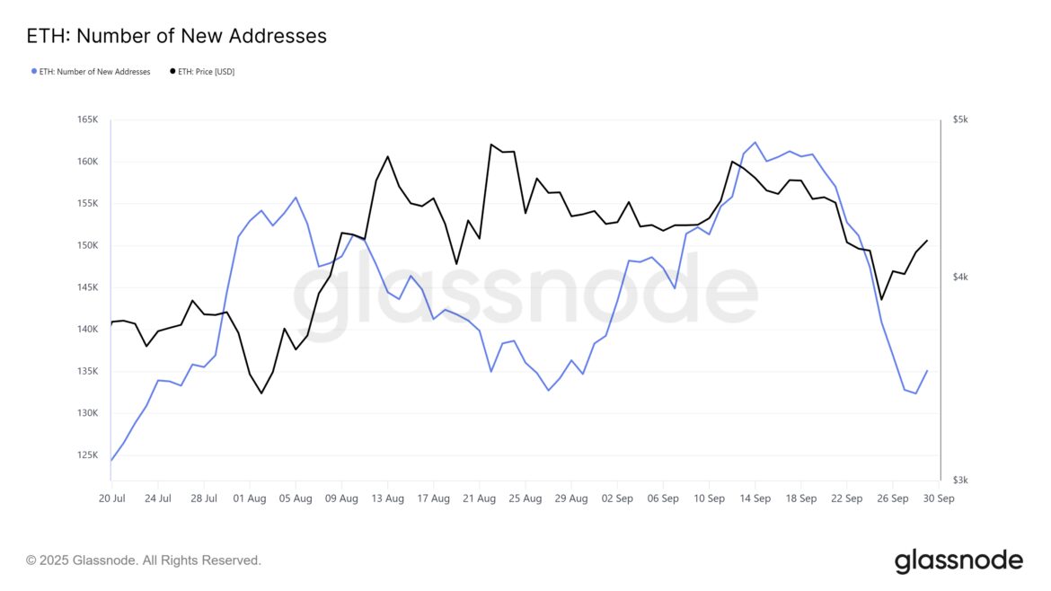 On-chain data shows new Ethereum addresses are at a two-month low, reflecting weaker network growth. New addresses often indicate the level of market traction, and the decline suggests hesitation among participants. Many investors appear unwilling to commit fresh capital until stronger recovery signs emerge in ETH.