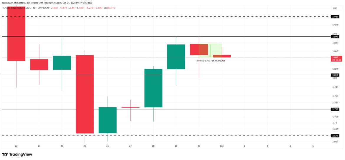The total crypto market cap (TOTAL) and Bitcoin (BTC) took a minor hit today as the former fell by $29 billion. The drawdown which extended to the altcoins resulted in Plasma (XPL) falling by 19.6% in 24 hours.