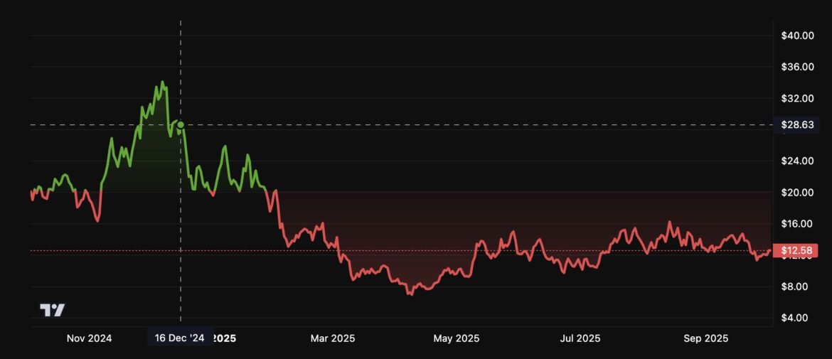 On the day, Injective (INJ) rose 5.2% to trade at $12.58. The recent peak was $52.6 on March 14, 2024.