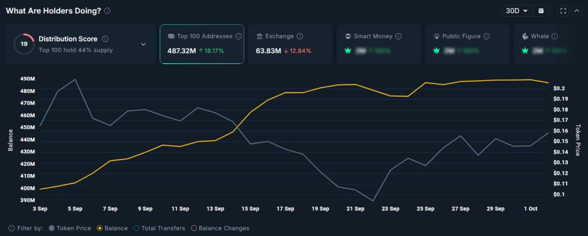 TOSHI’s token distribution also looks healthy, reducing sell pressure from concentrated holdings. Nearly all supply is already in circulation; the top 10 wallets hold less than 20% of the total supply.
