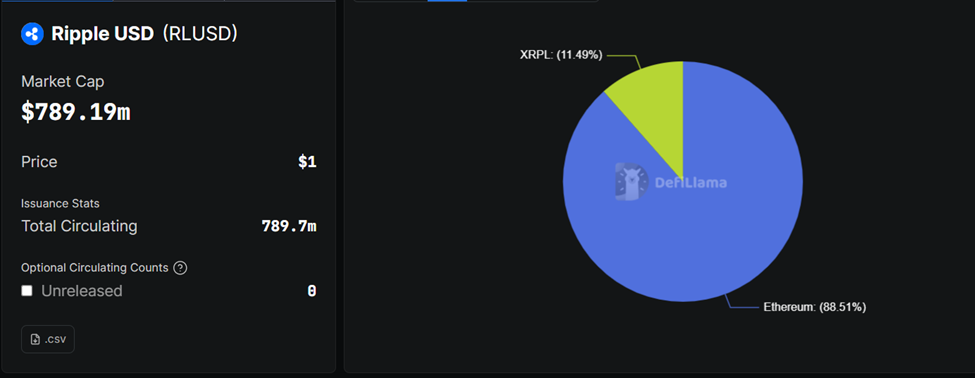 Ripple’s RLUSD on Ethereum vs. XRPL. Source: DefiLlama