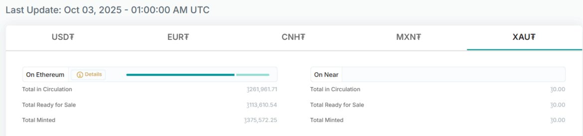 The firm said the token’s total minted supply amounts to 375,572.25 ounces, of which 261,961.71 ounces—worth roughly $1.01 billion—are in circulation, while 113,610.54 ounces remain available for sale.