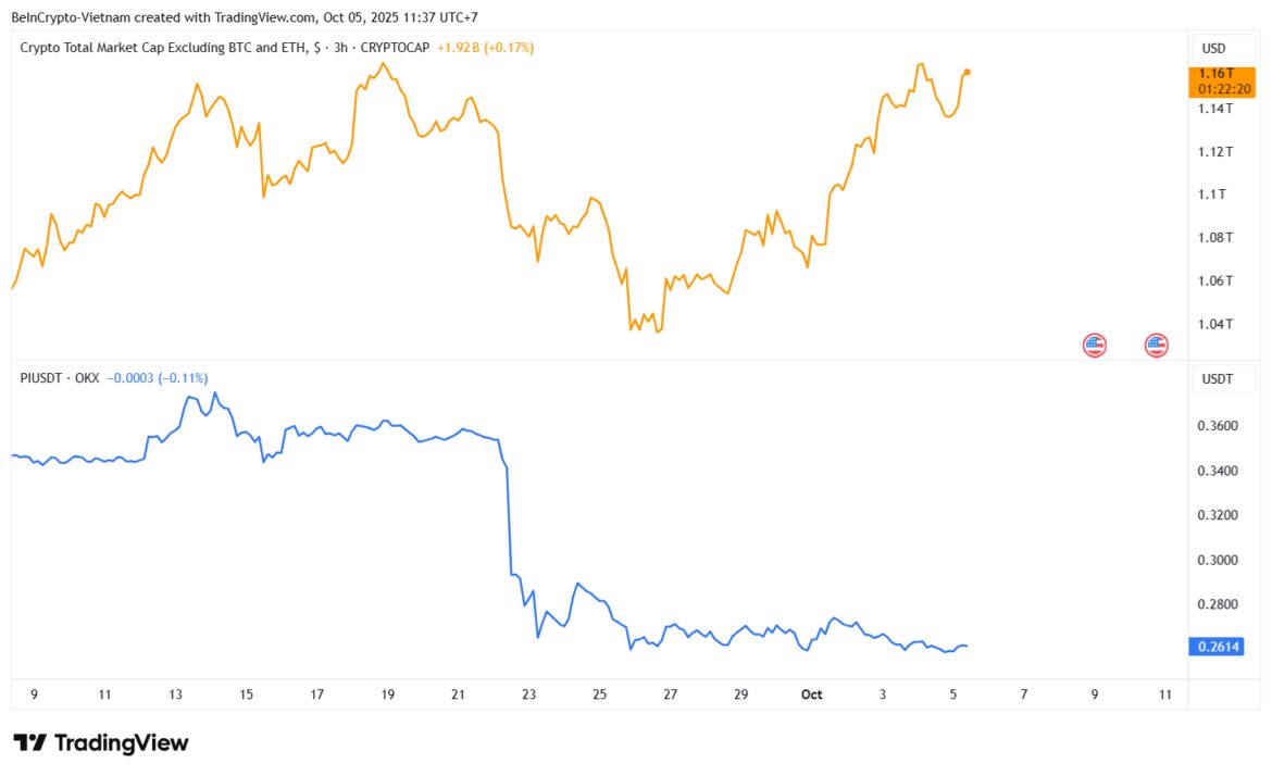 The decline underscores a widening gap between Pi’s performance and that of major digital assets.