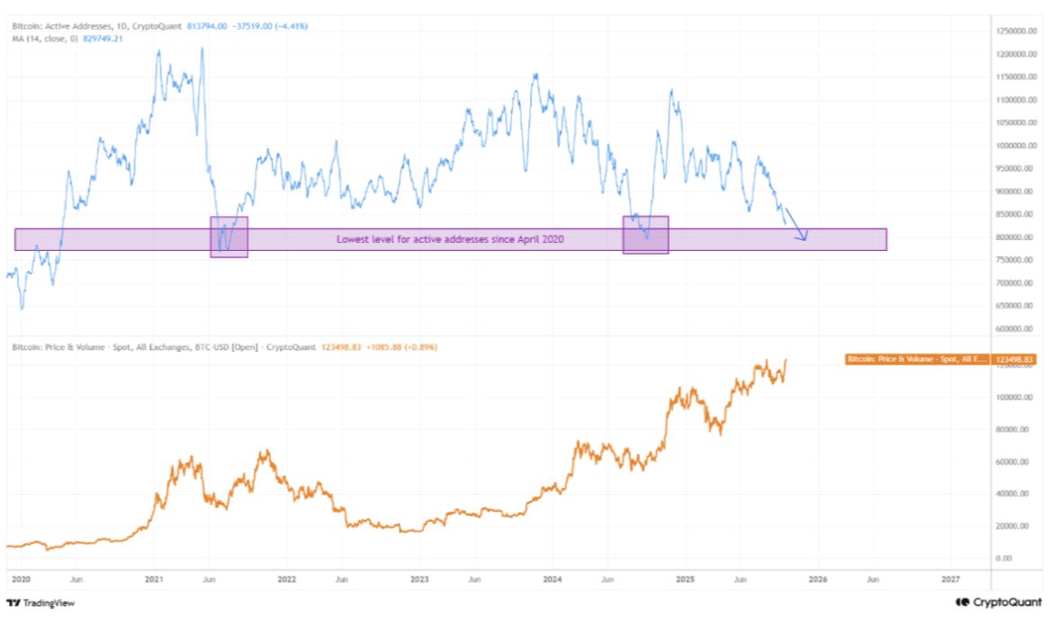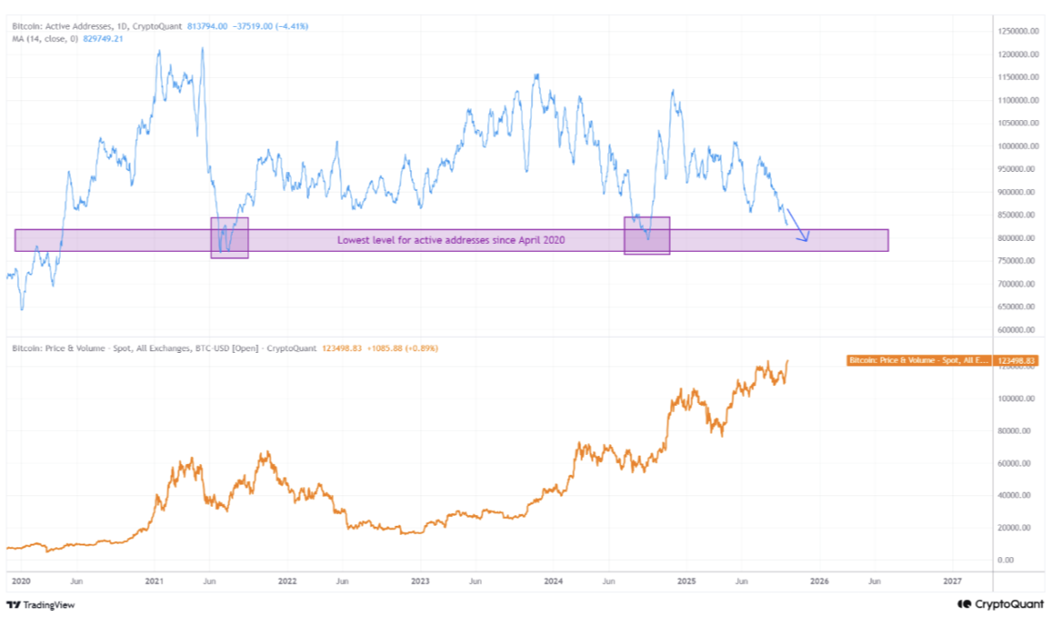 Bitcoin’s recent climb to new all-time highs might not be as strong as it looks. A new report has revealed that while BTC’s price has surged, the number of active addresses on its network has dropped. This signals a negative divergence between the coin’s market price and on-chain activity.