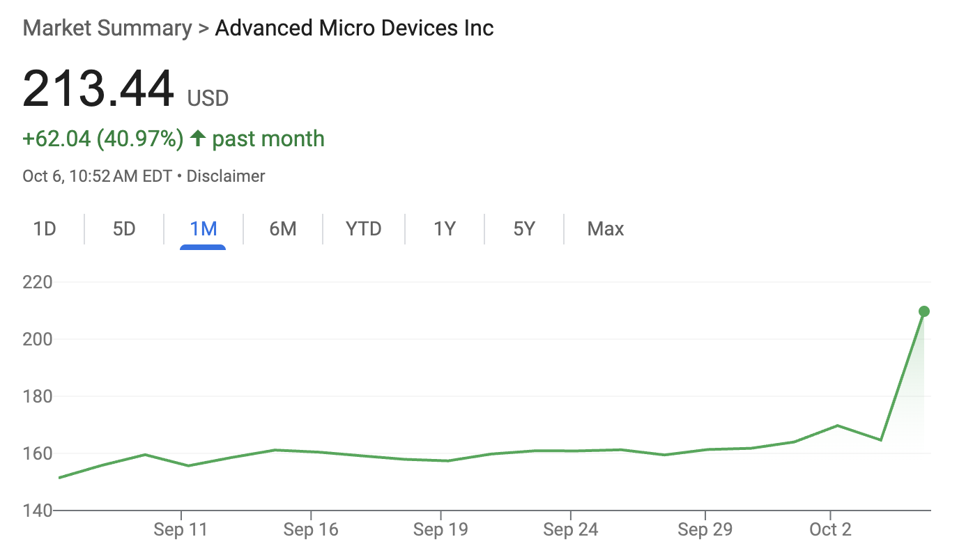 Nvidia is one of the famed “Magnificent 7” stocks, while AMD’s share price has been stagnating for the past month. That is, until OpenAI juiced its valuation with a major partnership: