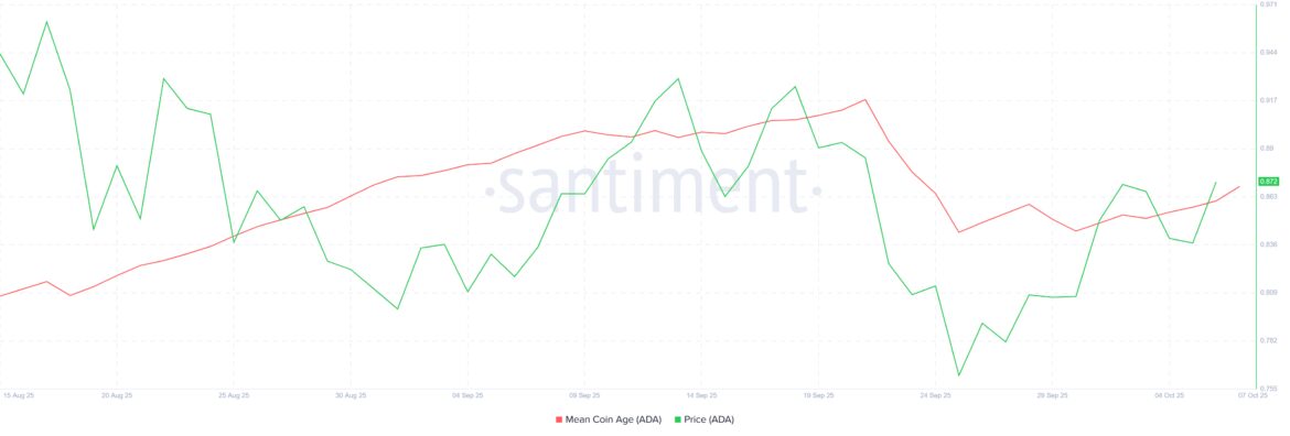 The Mean Coin Age (MCA), a key on-chain indicator tracking the average age of all held tokens, recently showed a slight decline after several weeks of upward movement. This downturn suggests that long-term holders (LTHs) have started selling, capitalizing on short-term gains as Cardano’s price climbed earlier this week.