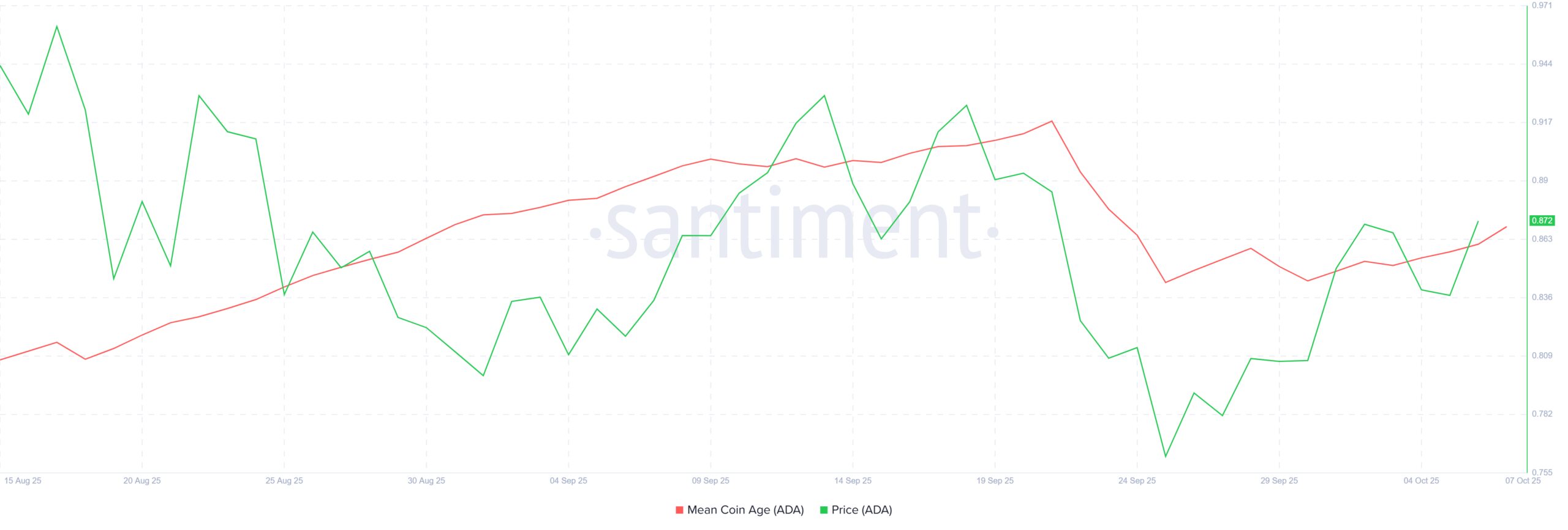 However, if long-term holders pause their selling and market sentiment improves, ADA could break past the $0.88 barrier and rise toward $0.93. Such a move would restore bullish confidence and potentially pave the way for a broader recovery phase in the weeks ahead.