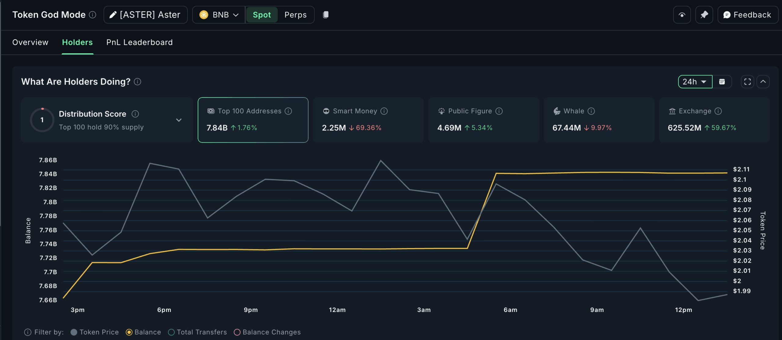 Meanwhile, public-figure wallets have also grown their holdings by 5.34%, adding about 236,000 ASTER (almost $465,000).