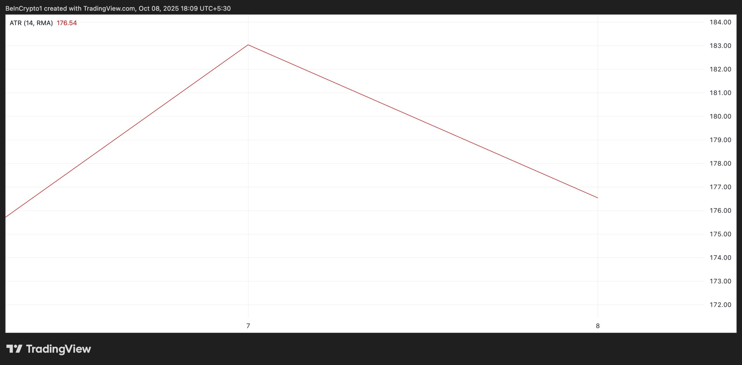 The decline in volatility is evident in ETH’s Average True Range (ATR), which has started to fall. At press time, this indicator, which measures the degree of price fluctuation over a set period, is at 176.54.