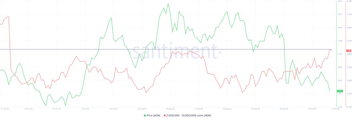 Home BlockchainCardano Whale Holdings Rise To 5-Month High Even As Price Falls To $0.60
