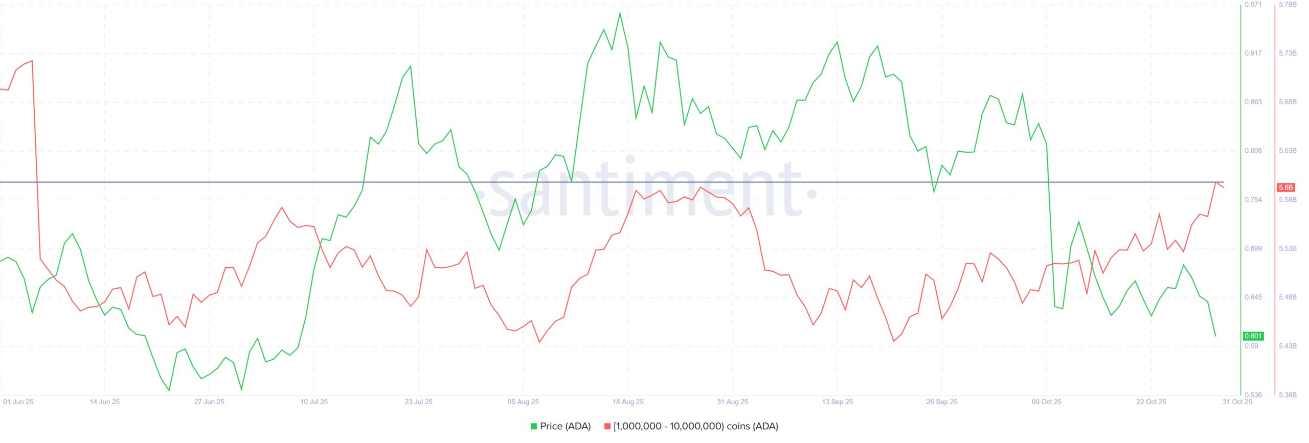 Cardano Whale Holdings Rise To 5-Month High Even As Price Falls To $0.60