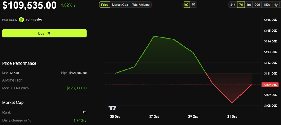The statement comes after Bitcoin slipped below $110,000 and was trading at $109,535 on Friday during the early hours of the US session.
