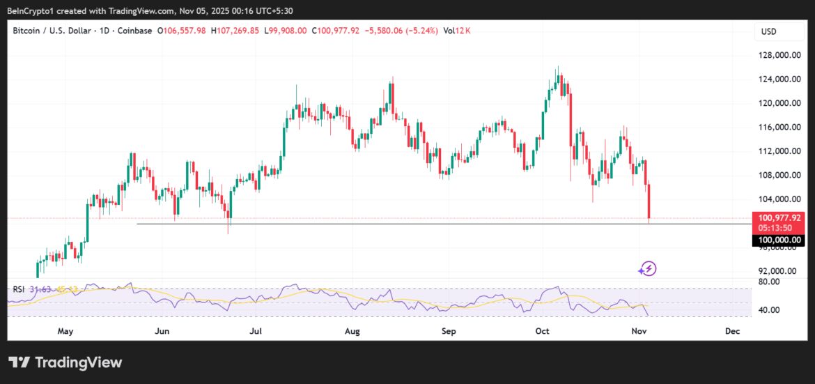 The post Bitcoin Briefly Breaks Below $100,000 on Coinbase Exchange appeared first on BeInCrypto.