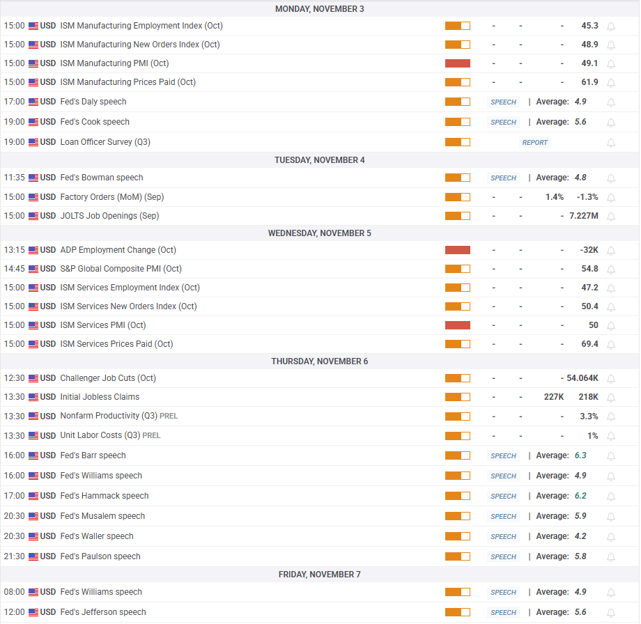 Hence, the market reaction to the upcoming ADP data could remain short-lived. Later in the day, the ISM Services PMI data for October could trigger a straightforward reaction, with the better-than-forecast headline PMI reading and a noticeable recovery in the Employment component boosting the USD while weighing on XAU/USD and vice versa.