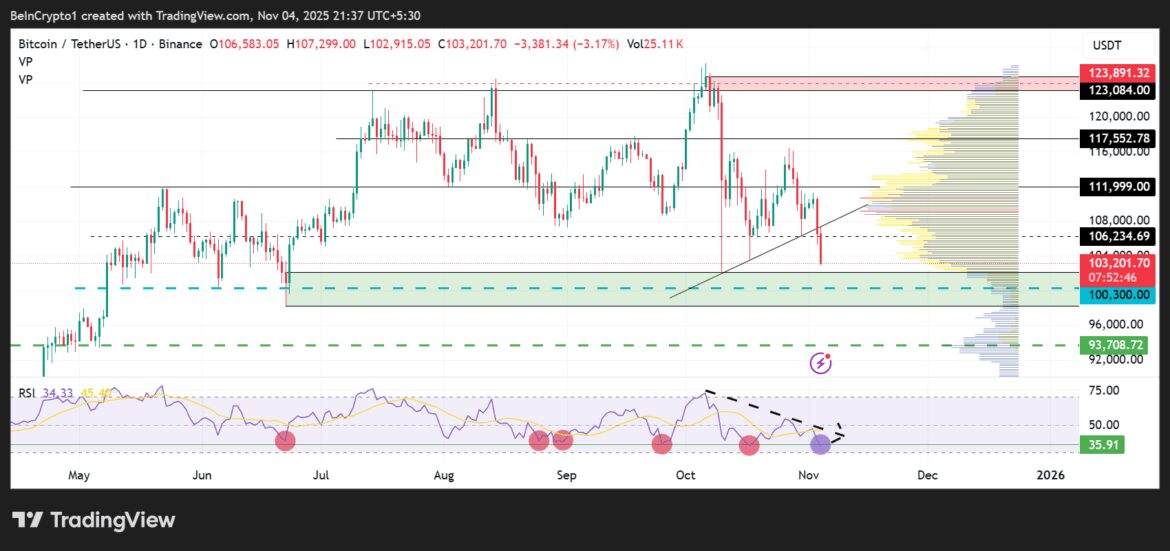 Meanwhile, Bitcoin continues to slide lower after descending to the $103,000 range on Tuesday. Prospects for further downside remain very much alive, with concerning actions by significant market players keeping traders on edge.