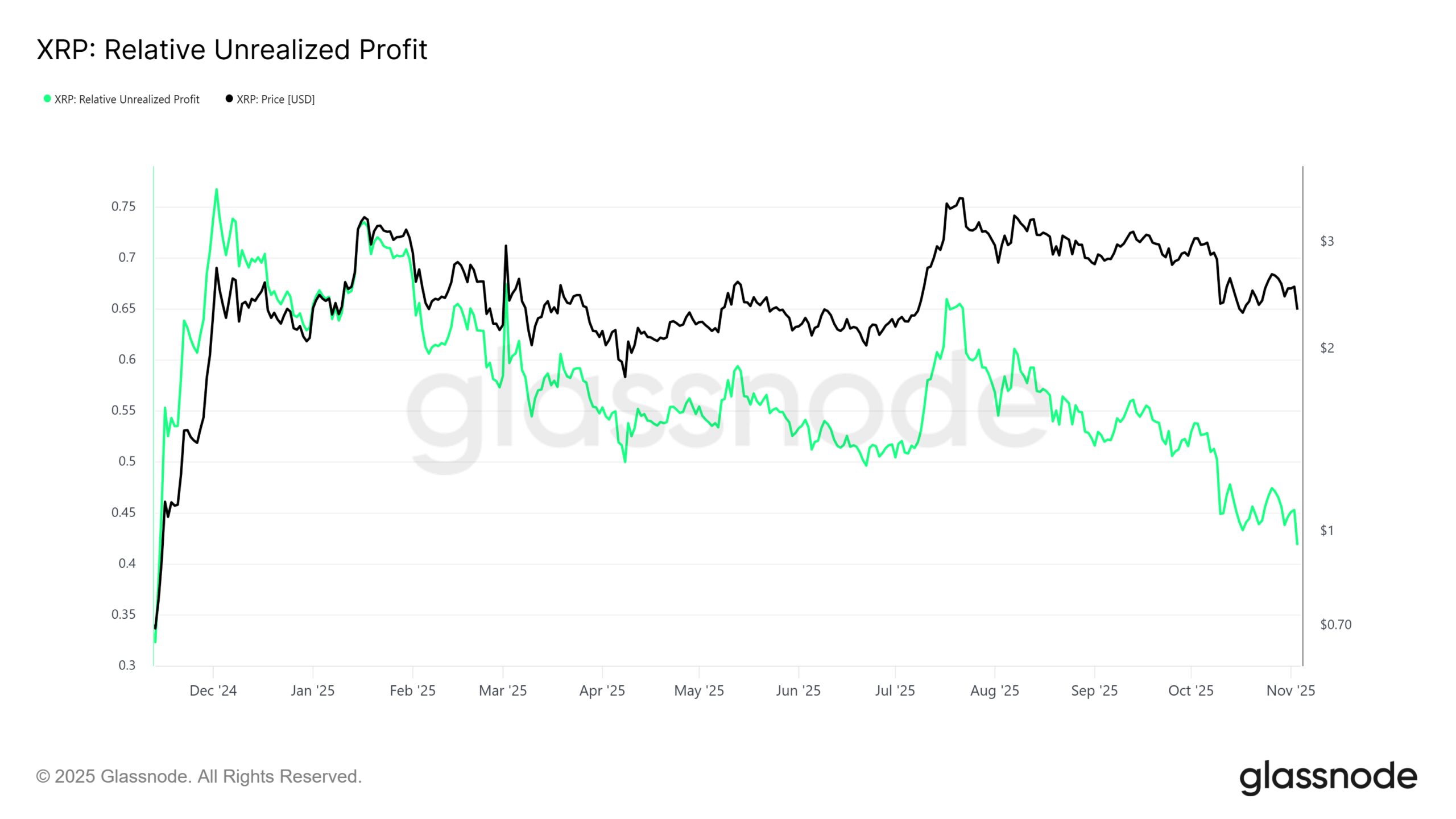 Unrealized profits for XRP holders have dropped to a 12-month low, reflecting a worrying trend across the asset’s investor base. Unrealized profits refer to paper gains based on the asset’s purchase price rather than actual sales. The decline suggests that most investors are now holding XRP either at a loss or with minimal gains.