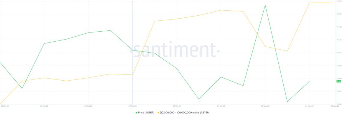 The post 155 Million ASTER Whale Accumulation Brings Price Back To $1 appeared first on BeInCrypto.
