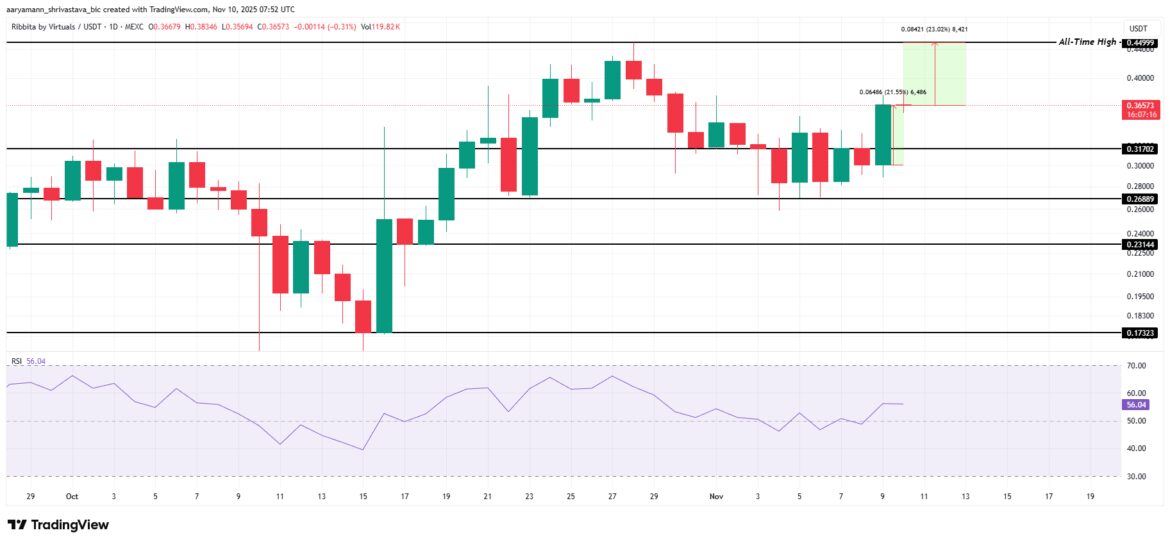 The ATH was recorded in late October before TIBBIR corrected, but the token now appears poised for another upward move. If it can hold $0.317 as a key support floor and break above the $0.400 resistance, it could reclaim its previous highs. The RSI remains in positive territory, indicating strong bullish momentum driving further gains.