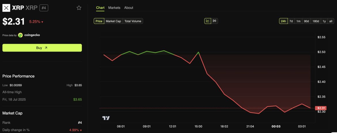 While the ETF saw strong performance, XRP itself continues to face market headwinds, with the price dropping over 5% in the past day.