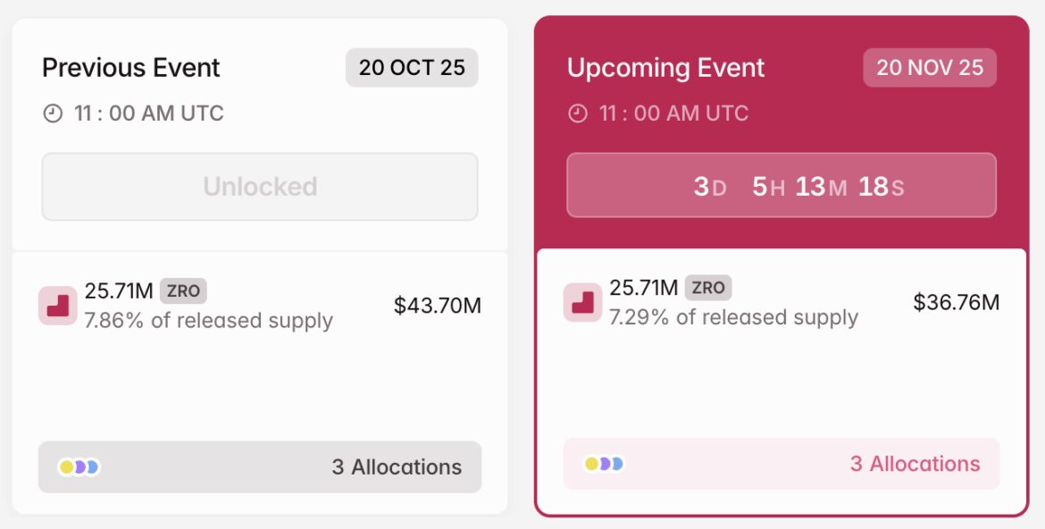 ZRO Crypto Token Unlock in November. Source: Tokenomist