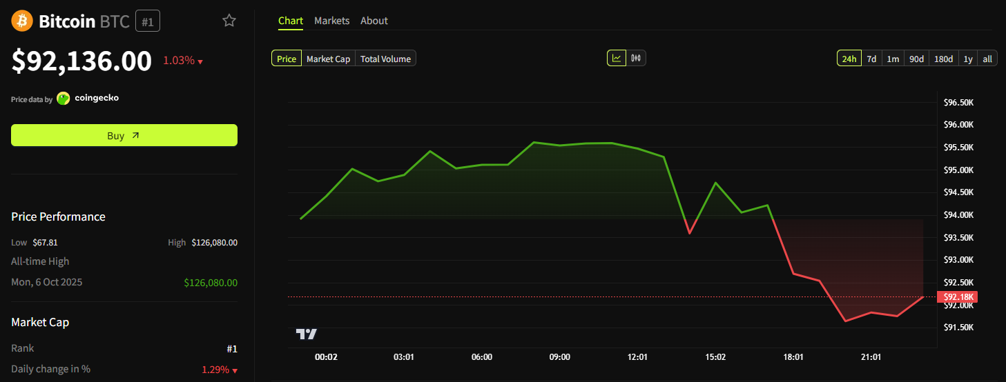 The post Crypto Bloodbath: Bitcoin Loses $92K: Ethereum Slips $3K — Worst Drop in Months appeared first on BeInCrypto.