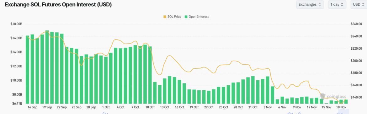 Solana’s market activity demonstrates the growing attention. Open interest in SOL futures is rising as November 19 approaches, indicating increased trader participation and engagement.