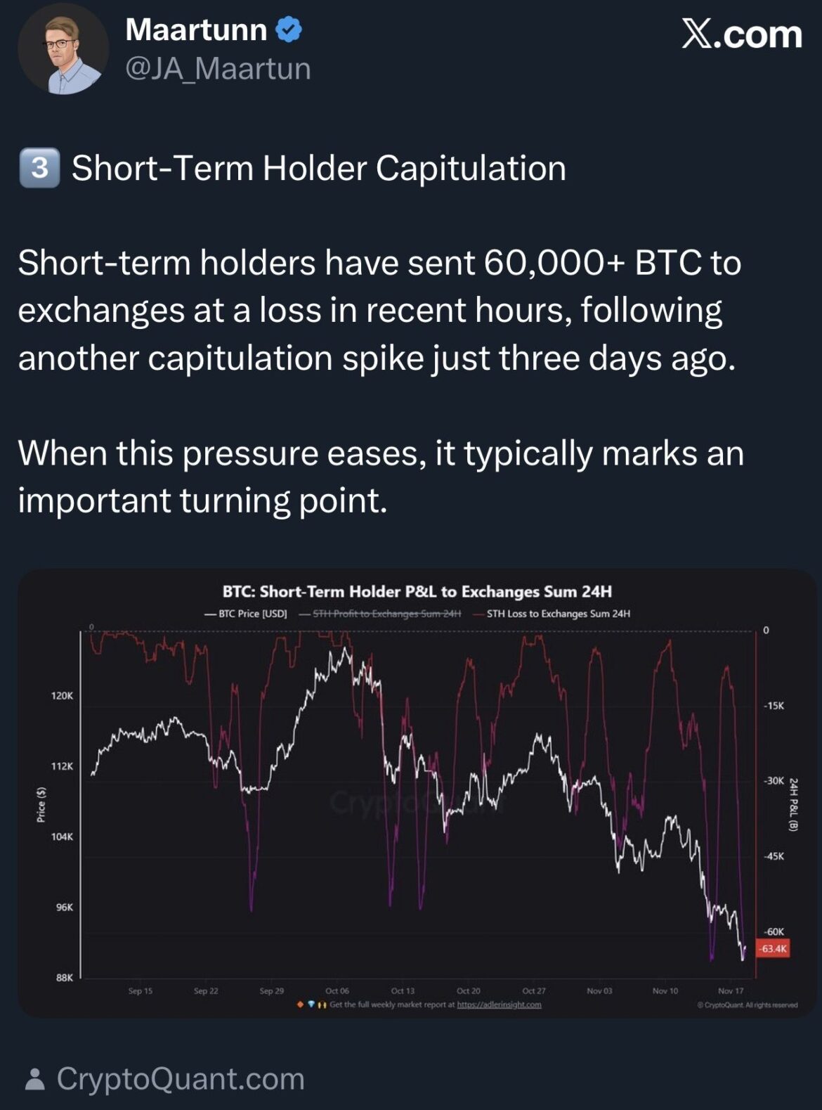 More signs for a big bounce ahead. pic.twitter.com/uVDgwoPNkP— Bitcoin Munger (@bitcoinmunger) November 19, 2025