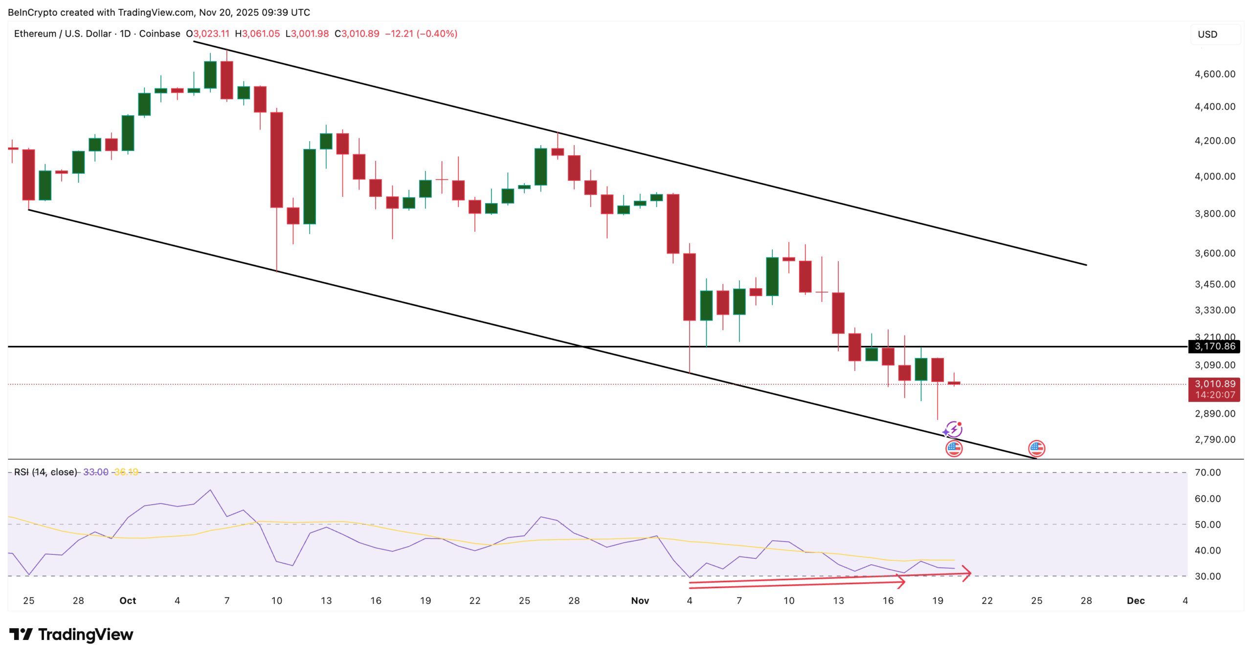 Unless Ethereum posts a daily close above $3,170, every bounce will remain temporary, and the trend stays bearish.