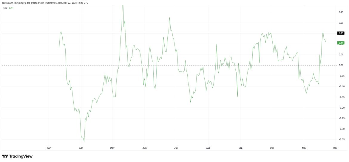 This pattern may repeat, as Pi Coin has struggled to maintain inflows once CMF breaks above this zone.