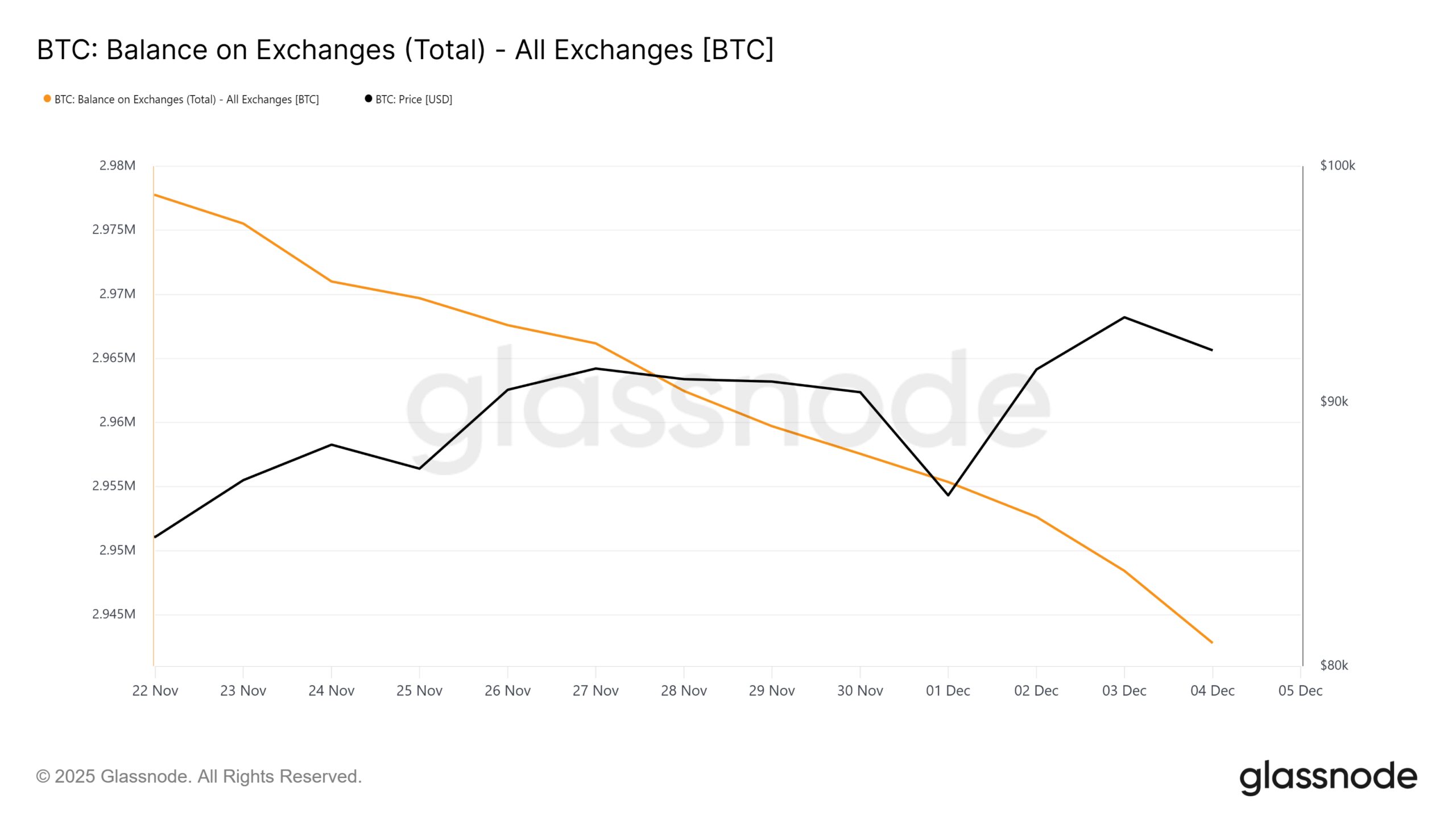Bitcoin Balance On Exchanges. Source: Glassnode