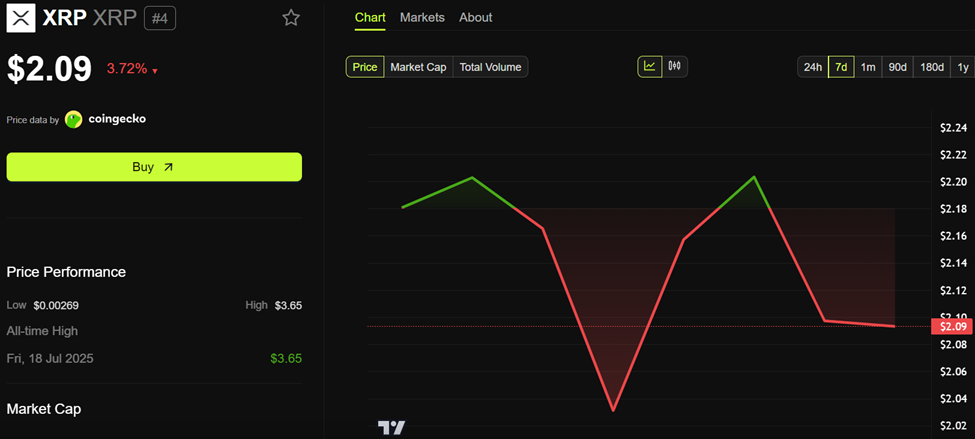 As of this writing, XRP was trading for $2.09, down by almost 4% in the last 24 hours. Market observers suggest focusing on adoption rather than charts.