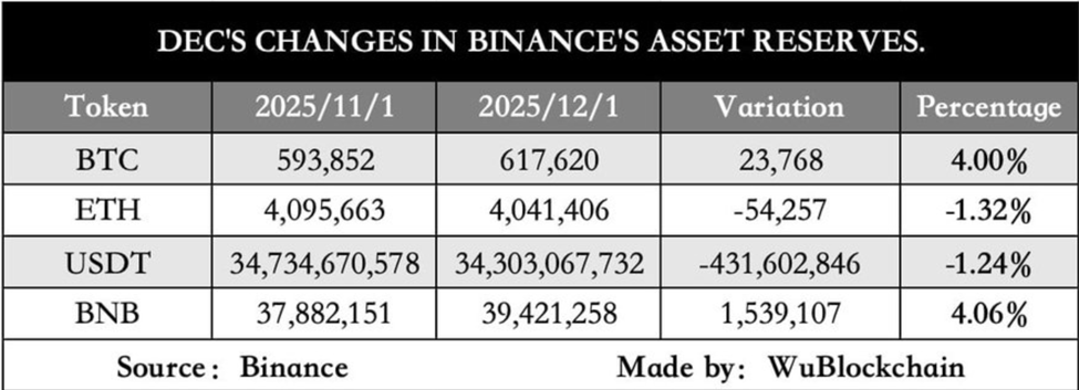 As of November 30, Binance reserves were hovering near $120 billion, with USDT (ERC-20) reaching a record $42.8 billion. Despite volatility, Binance remains the second-largest holder of global Bitcoin reserves.