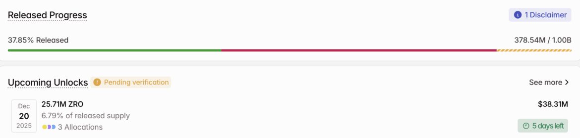 - Number of Tokens to be Unlocked: 25.71 million ZRO (2.57% of Total Supply)