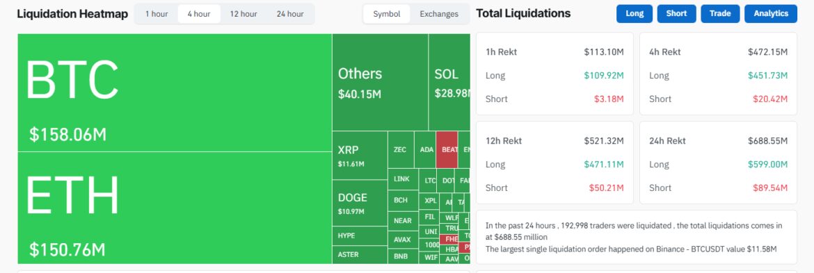 When prices slipped, liquidation engines sold Bitcoin automatically to cover losses. That selling pushed prices lower, triggering further liquidations in a feedback loop.