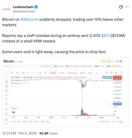 - A Bithumb flash crash exposed deep liquidity risks in centralized exchanges, driven by a rumored 2,000 $BTC airdrop error.