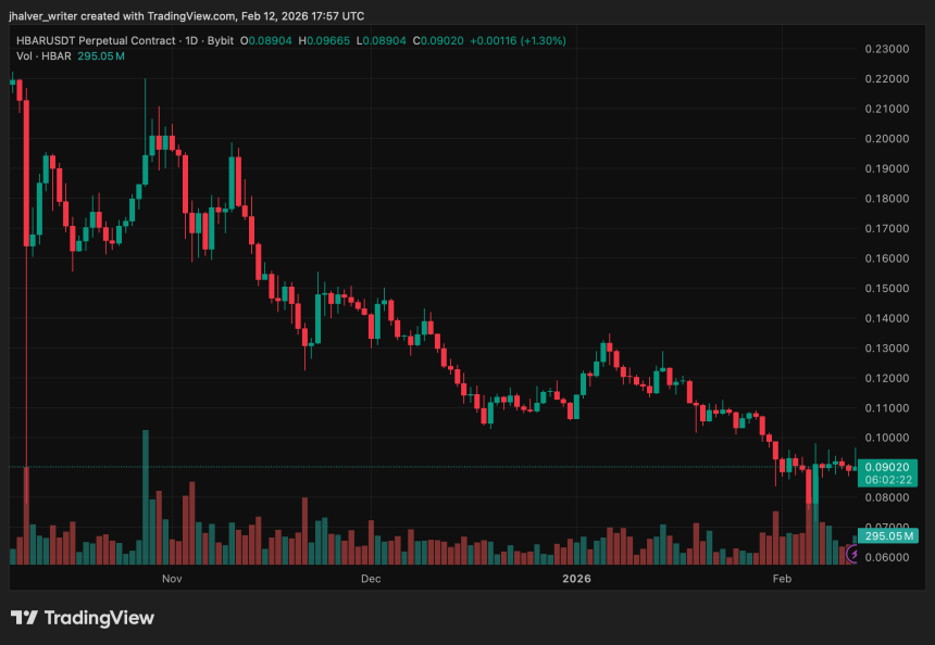 Hedera (HBAR) has traded around the $0.09 mark, testing a key technical support level, even as broader price momentum remains subdued. Despite occasional short-term bounces and technical patterns suggesting relief rallies, ongoing declines in network revenue and ecosystem metrics are weighing on investor confidence.